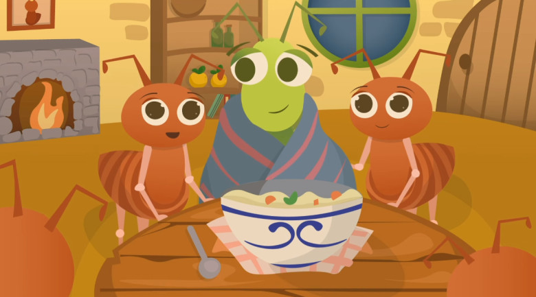Semut yang baik membiarkan belalang masuk ke dalam rumahnya. Semut juga memberikan selimut dan makanan untuk belalang kemudian belalang meminta maaf kepada semut dan mengucapkan terima kasih karena telah menolongnya.