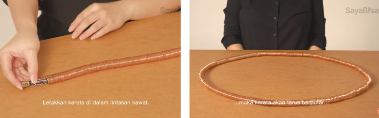 4. Terakhir, letakkan kereta di dalam lintasan kawat. Maka, keretanya akan berjalan sendiri.