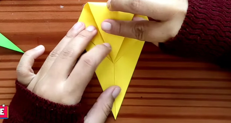 9. Satukan ujung lipatan kanan dan kiri kertas