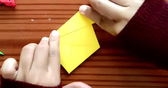 8. Lipat ujung atas kertas seperti gambar berikut, lalu masukan kedalam lipatan