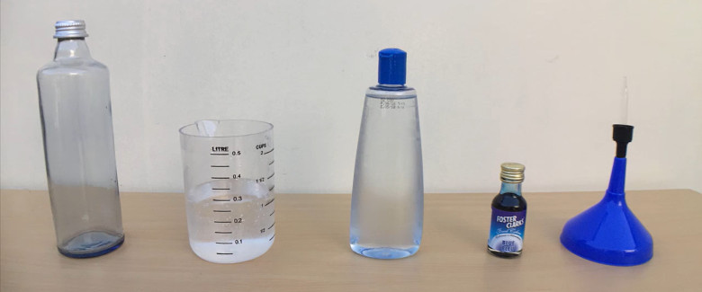 Untuk membuat ombak dalam botol, teman-teman perlu menyiapkan alat dan bahan sebagai berikut: