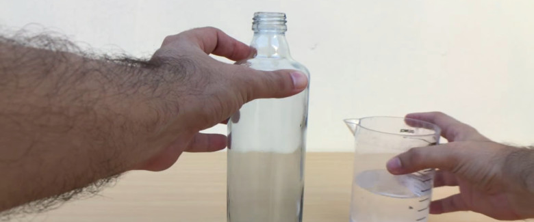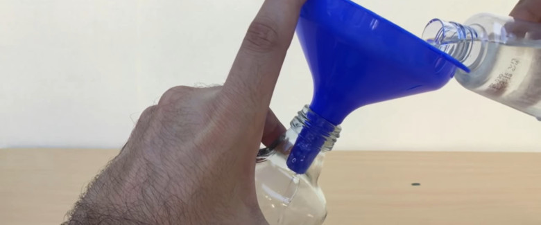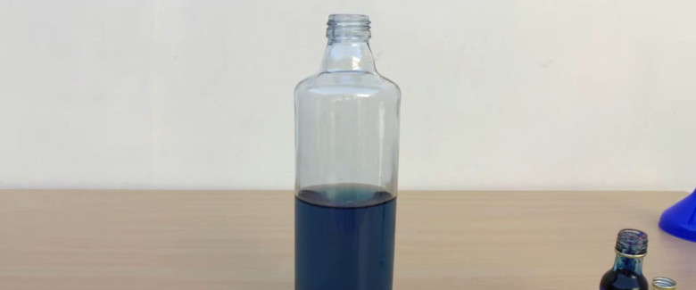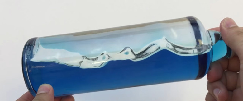 4. Jika sudah, tutup botol dan miringkan. Goyangkan botol untuk menciptakan ombak di dalamnya.