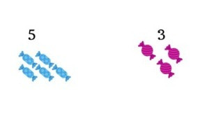 bayangkan kamu punya 5 permen dan adikmu punya 3 permen, siapa yang memiliki permen lebih banyak?