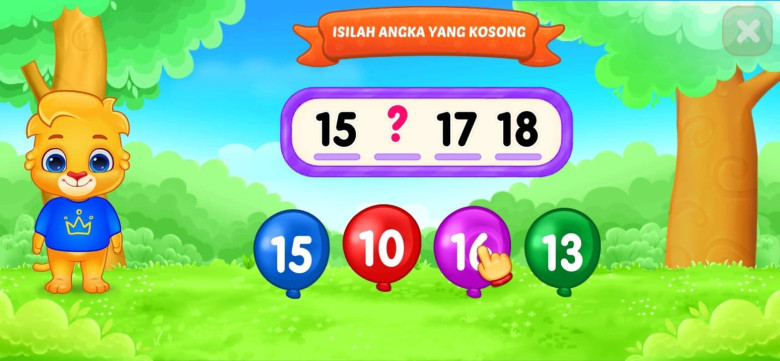 Menu keempat adalah melengkapi urutan angka yang hilang, yang membantu anak-anak memahami urutan angka secara berurutan dan meningkatkan kemampuan logika mereka.