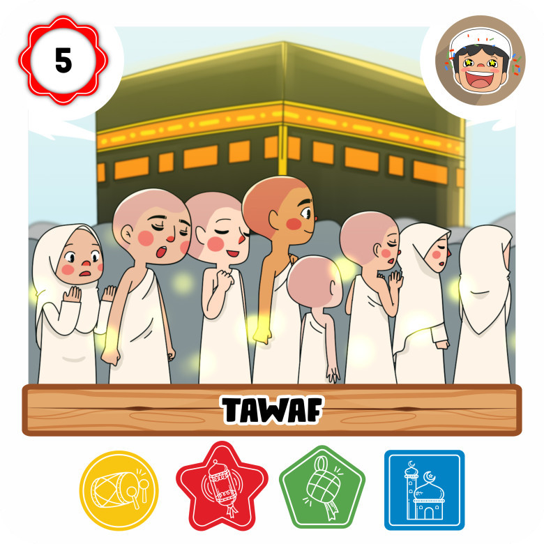 Meskipun tempatnya jauh, setiap Muslim punya mimpi untuk menyentuh Ka'bah suatu hari nanti. Sambil memegang kartu ini, yuk kita selipkan doa: "Ya Allah, semoga suatu hari nanti aku, Ayah, dan Bunda bisa berpegangan tangan melakukan Tawaf di depan Ka'bah yang indah ini."