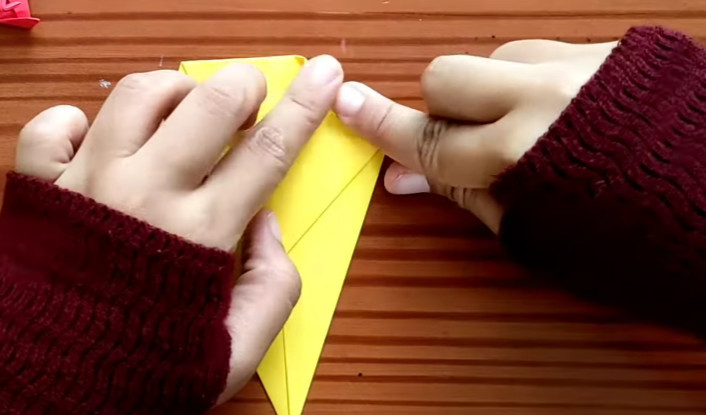 9. Satukan ujung lipatan kanan dan kiri kertas